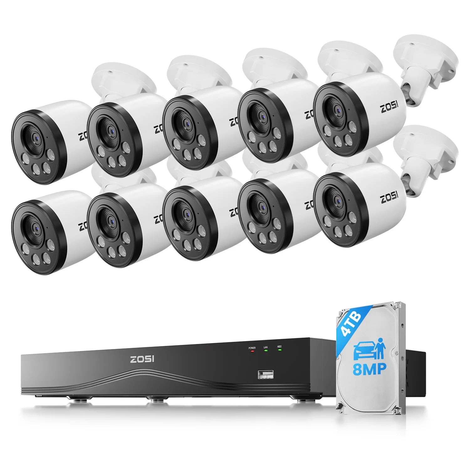 ZOSI 16CH 4K NVR Security System With 8MP PoE Cameras Outdoor Indoor